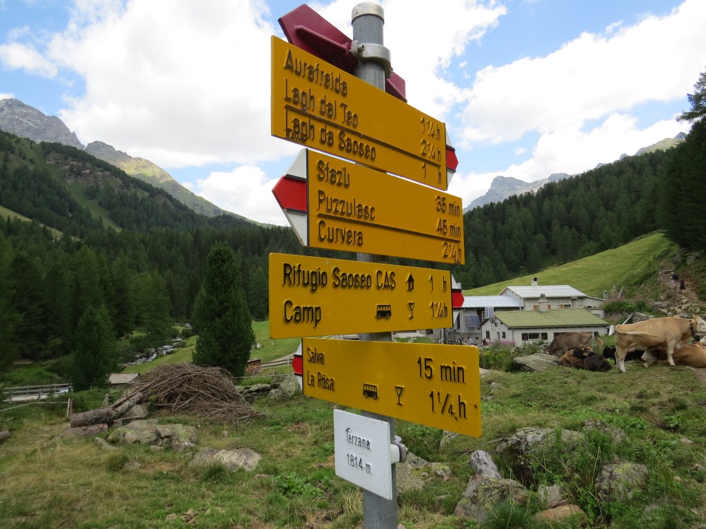 Wegweiser beim Rifugio Saoseo Datum 30.07.2023