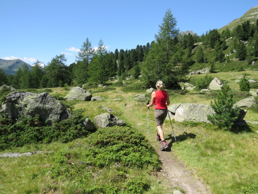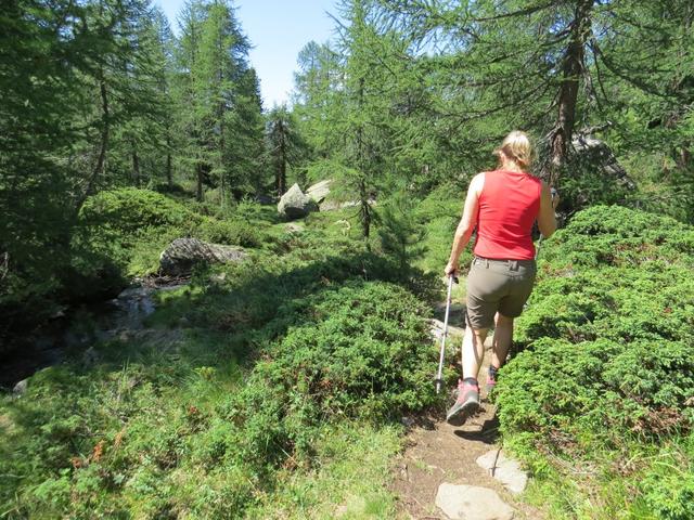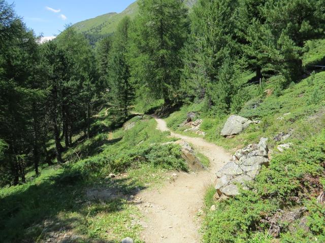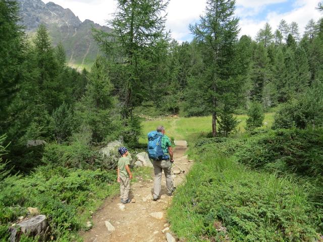 durch einen schönen Lärchenwald gewinnen wir an Höhe Datum 04.08.2023