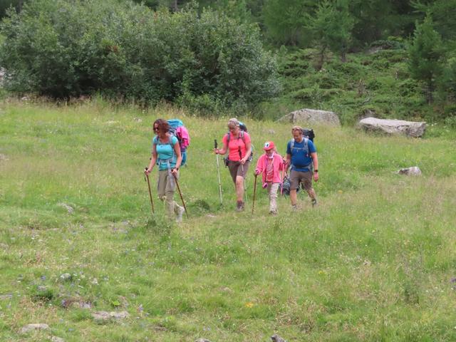 die ganze Gruppe wandert nun hinunter zum Rifugio Saoseo Datum 30.07.2023