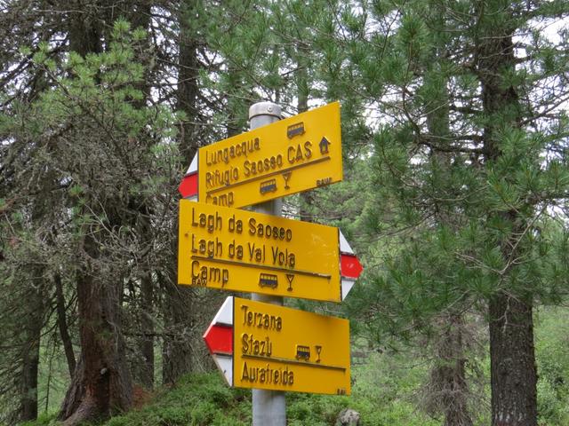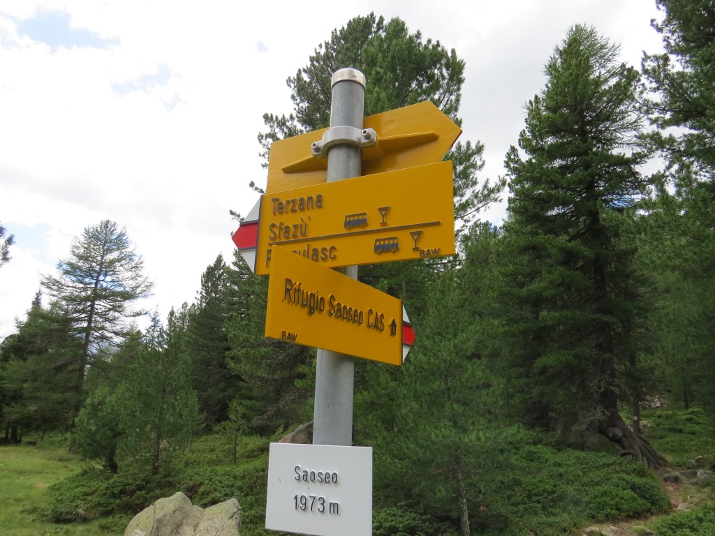 wenig später erreichen wir die Weggabelung von Saoseo 1973 m.ü.M. Datum 19.06.2023
