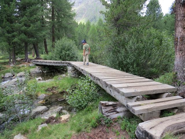 über eine Holzbrücke überqueren wir den Saoseo See... Datum 30.07.2023