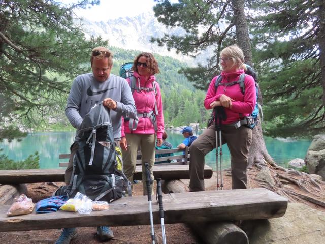 direkt am Ufer des Türkisblauen Sees, geniessen wir alle zusammen das mitgebrachte Essen Datum 30.07.2023