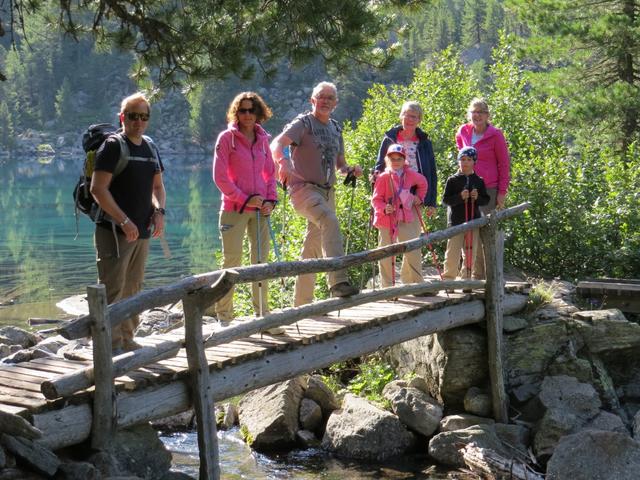 Gruppenfoto bei der Holzbrücke am Saoseo See Datum 04.08.2023
