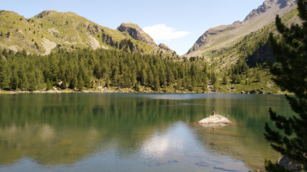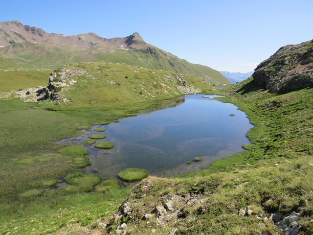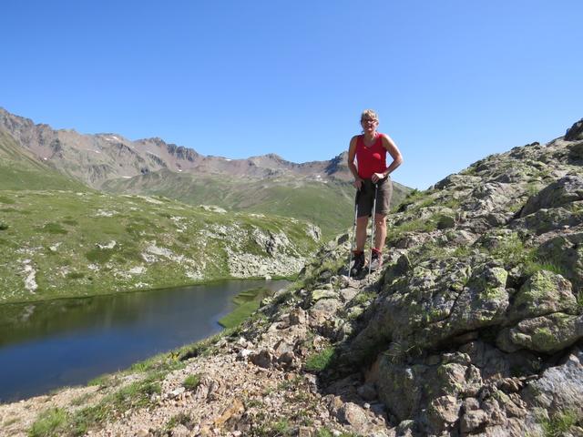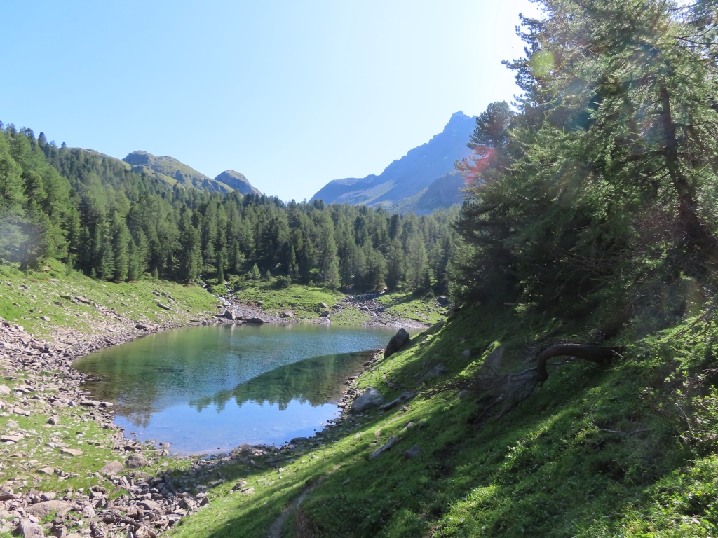 bei Punkt 2081 m.ü.M. erscheint vor uns der kleine See Lagh da Scispadus Datum 04.08.2023