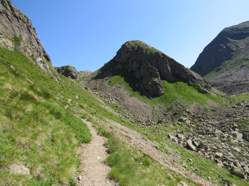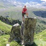 der alter Saumpfad führt uns zwischen den zwei Felsköpfen Moton und Motti... Datum 04.08.2023