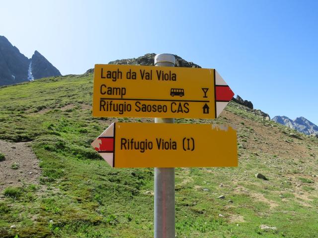 Wegweiser bei Sfazù. Unser Ziel ist der Rifugio Saoseo Datum 19.06.2023