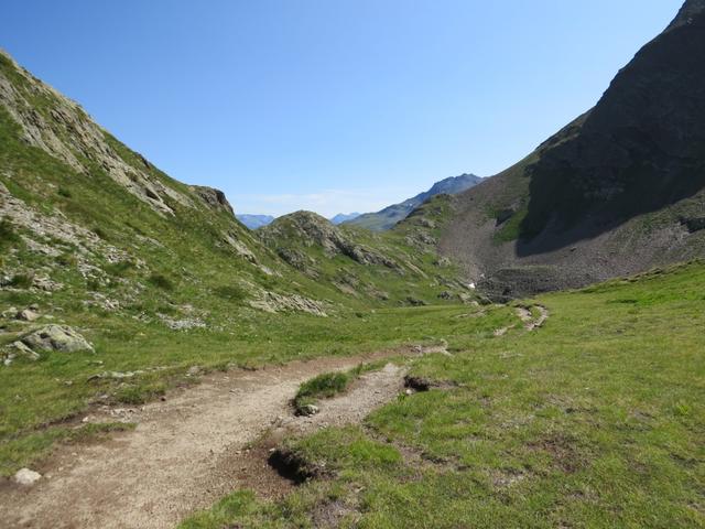 der Weg folgt dem Talboden, der sich allmählich verschmälert Datum 04.08.2023