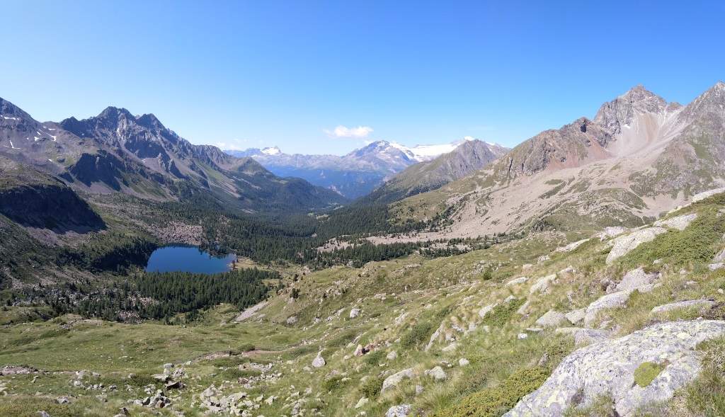 das ganze Val Viola mit seinen Seen erstreckt sich nun zu unseren Füssen Datum 04.08.2023