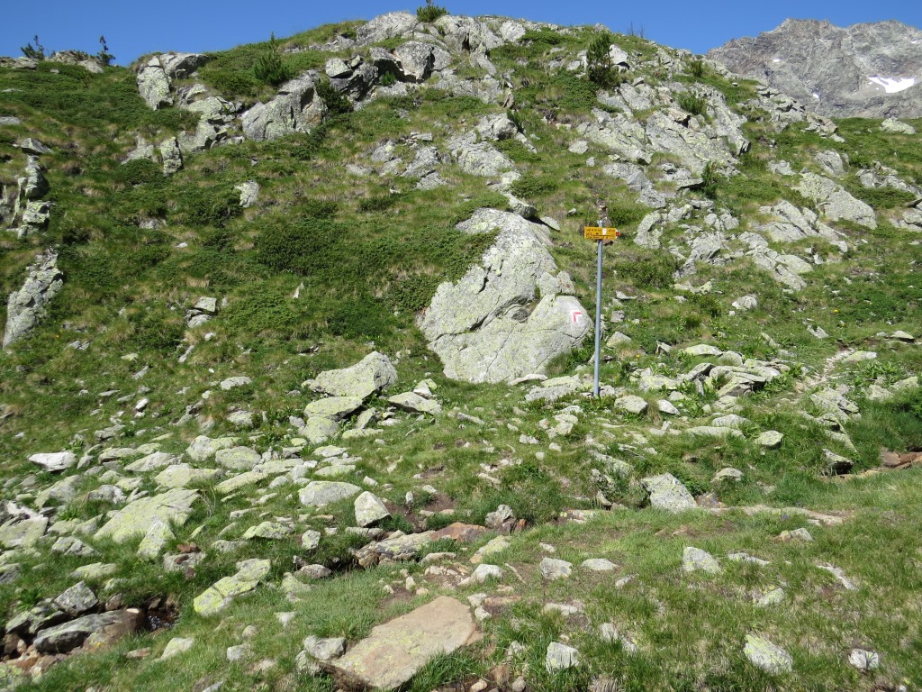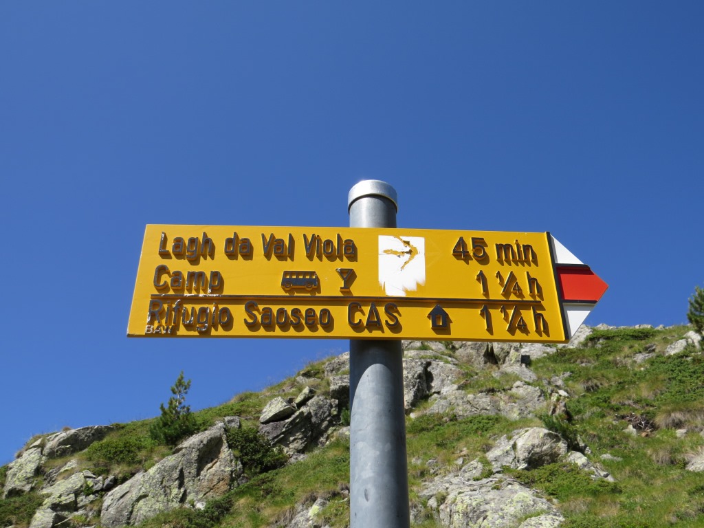 Wegweiser beim Lagh da Val Viola. Weiter geht es Richtung Pass da Val Viola Datum 04.08.2023