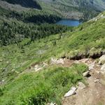 ...und beginnen mit dem Aufstieg zum Violasee, dem grössten See im Val da Camp Datum 04.08.2023