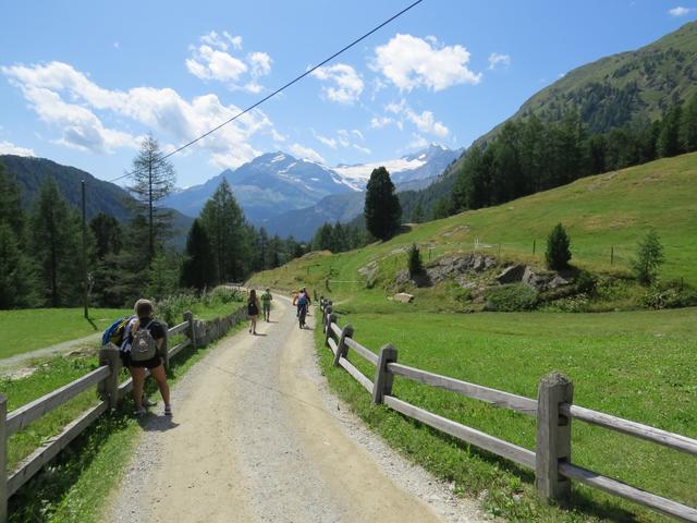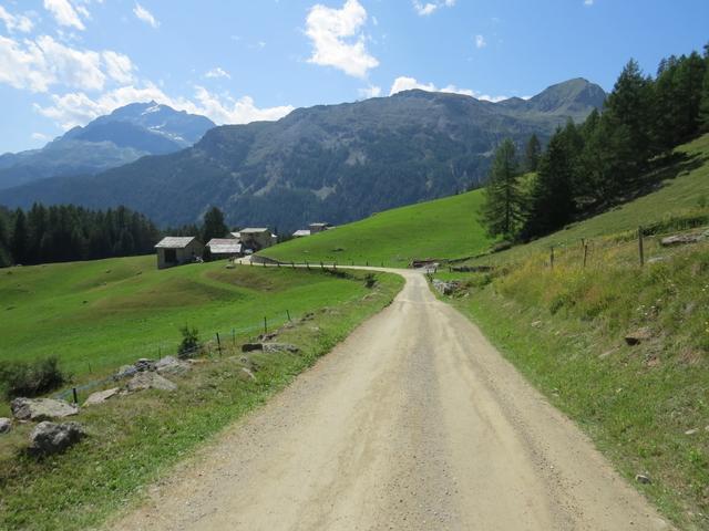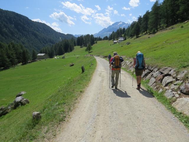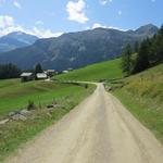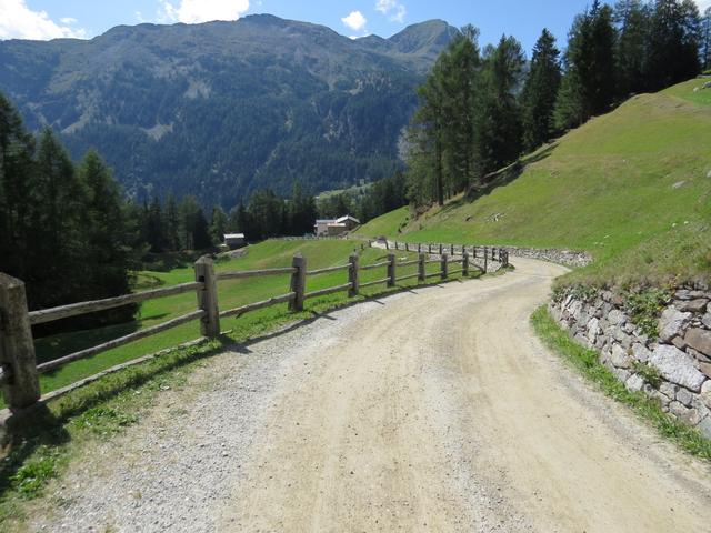 auf der ungeteerten Strasse laufen wir über die sonnige Talebene,... Datum 04.08.2023