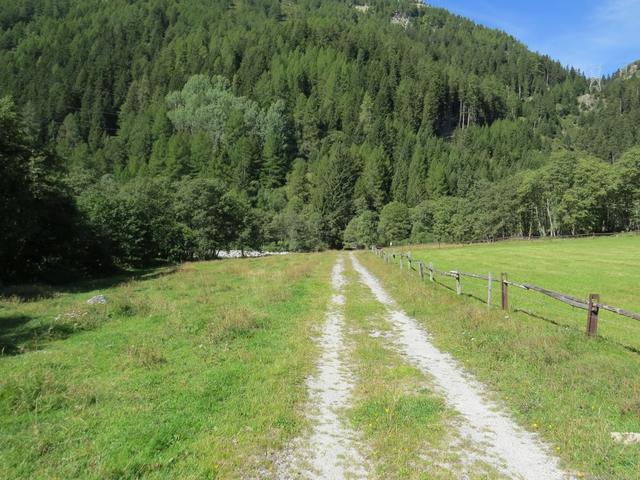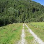 der Wirtschaftsweg führt zunächst durch Blumenwiesen, immer parallel zur Talstrasse