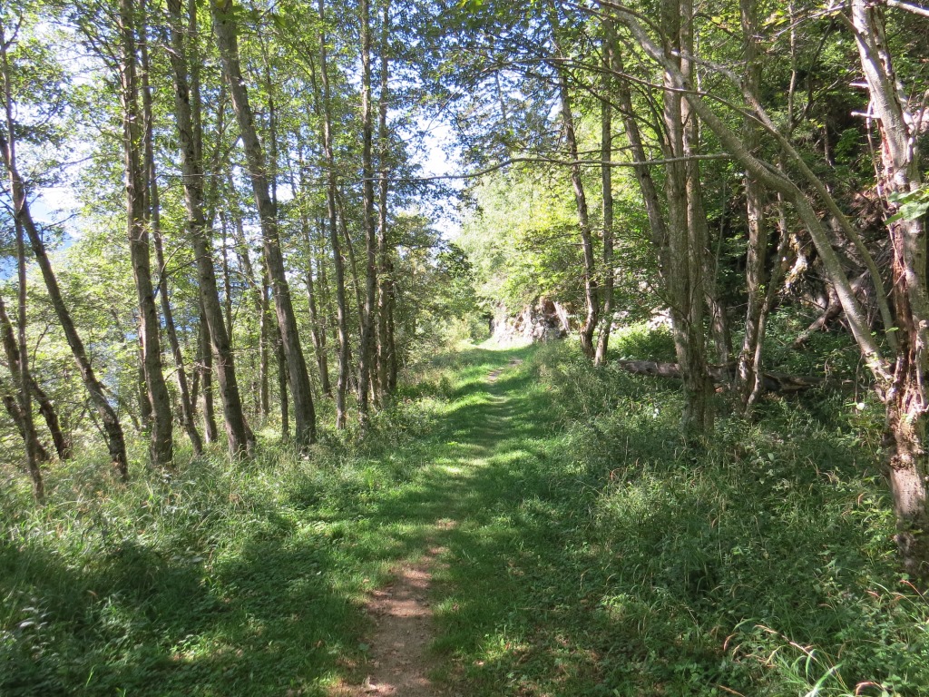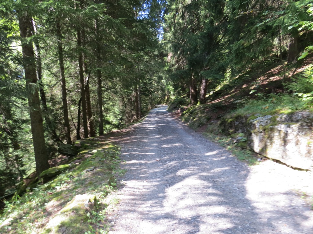 nach dem Kraftwerk wird der Weg schmaler und führt in stetem Auf und Ab 1348 m.ü.M. durch den Wald
