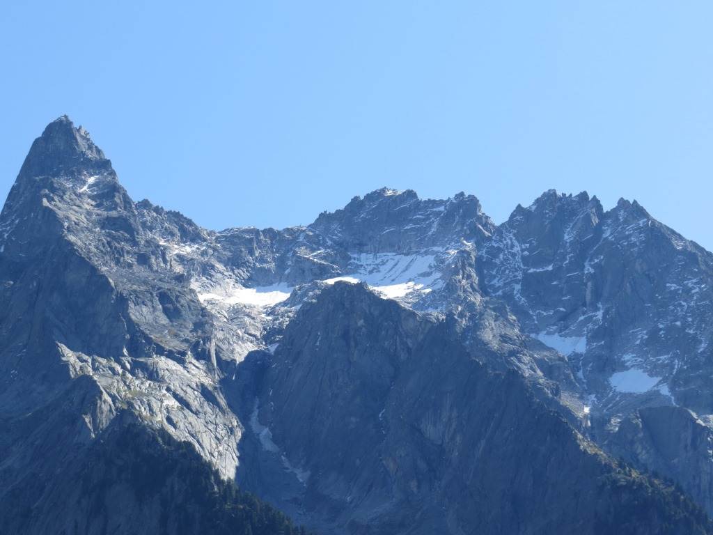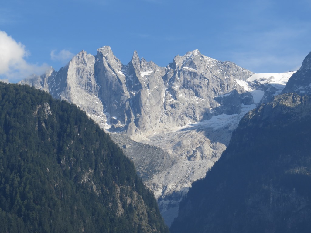 am auffälligsten ist die Sciora-Gruppe, der Pizzo Cengalo und der Pizzo Badile das Wahrzeichen des Bergells
