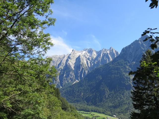 immer wieder bieten sich Ausblicke auf die gegenüberliegenden gezackten Granitgipfel, die so typisch für das Bergell sind