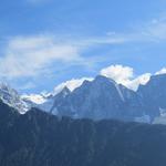 wir blicken auf die andere Talseite und bestaunen Piz Bregaglia, Casaccia, Cima dal Largh und Piz Bacun