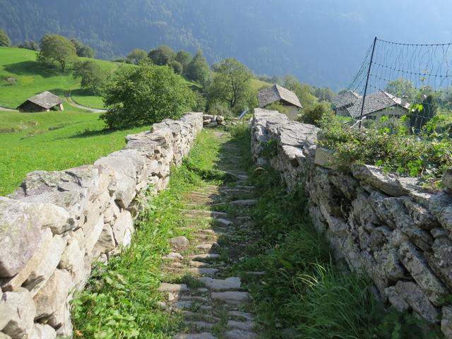 zwischen den einzelnen Stadel und Hütten ist der Weg sehr schön mit Granitplatten ausgelegt