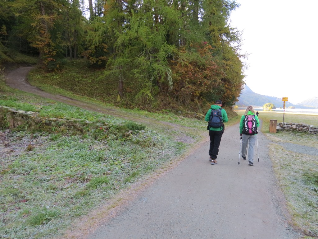 von der Kirche folgen wir der Strasse und biegen dann in den Wiesenpfad Richtung Segl-Maria ein Datum 02.11.2025
