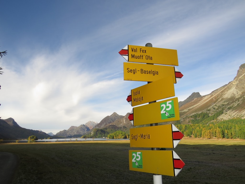 Wegweiser in Sils-Maria 1809 m.ü.M. Datum 27.10.2025