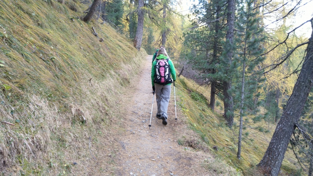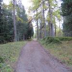 in mässig steilem Zickzack geht es nun durch den Lärchen-Arven-Wald aufwärts Datum 27.10.2025