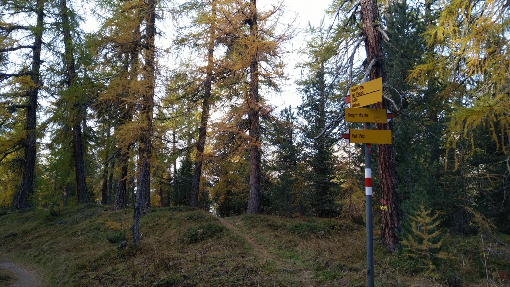 bald mündet der Wanderweg in den von Fex-Crasta und Fex-Curtins kommenden Hauptweg 2030 m.ü.M. Datum 30.10.2025