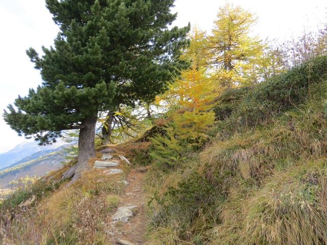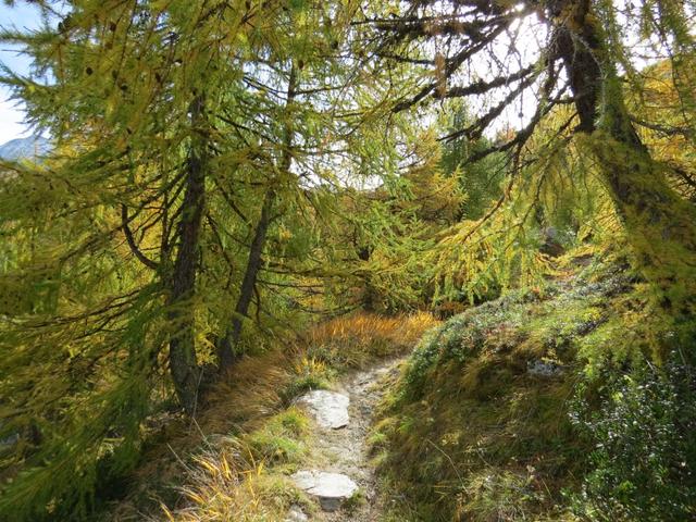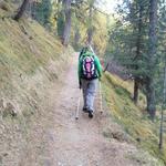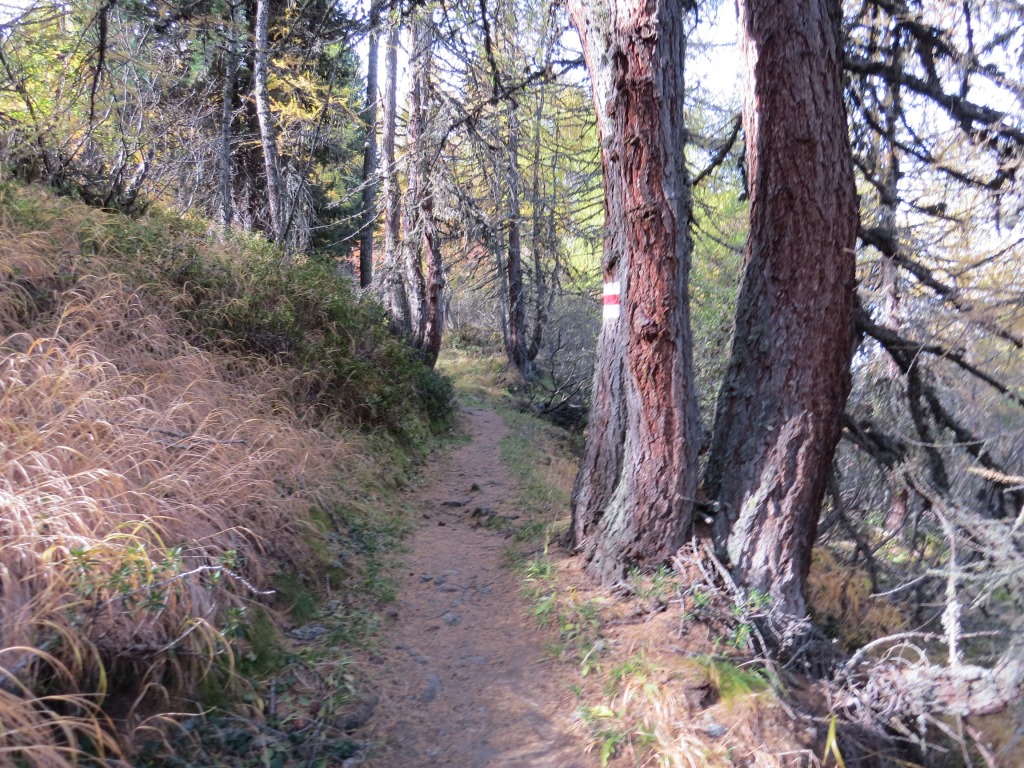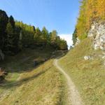 der sehr schöne Bergweg führt uns nun durch einen lichten Lärchenwald Datum 28.10.2025
