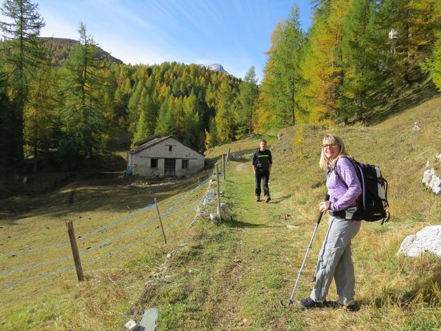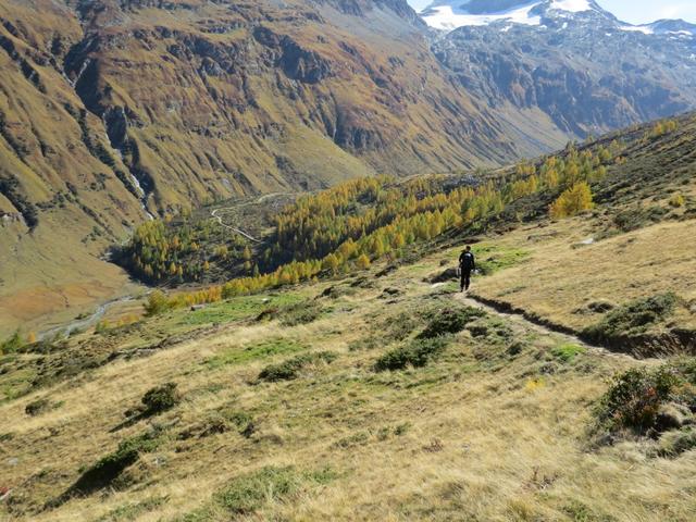 über Alpweiden wandern wir abwärts in das Val Fex Datum 28.10.2025