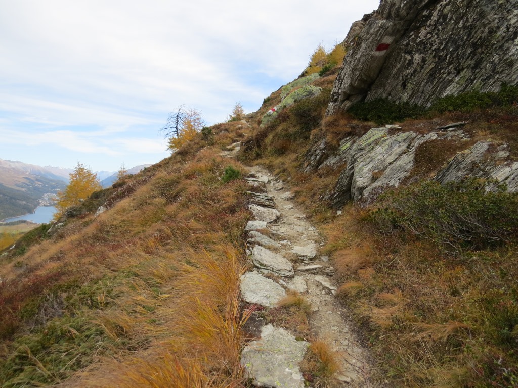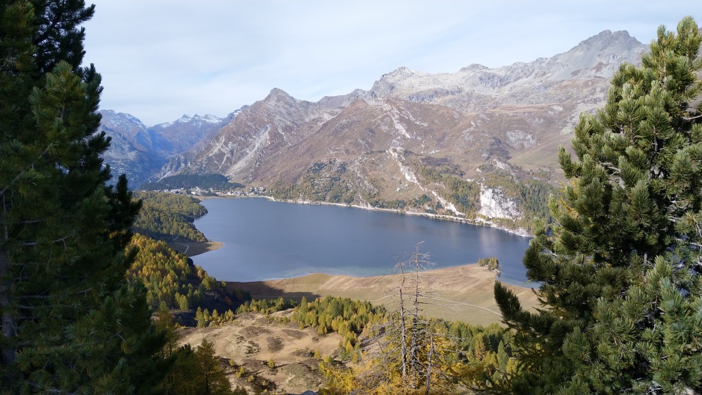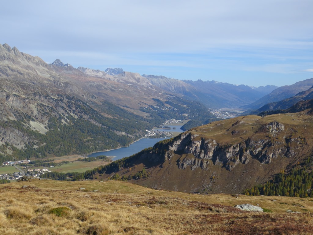 hier bietet sich eine fantastische Aussicht über die Engadiner Seenplatte Richtung Silvaplana Datum 28.10.2025