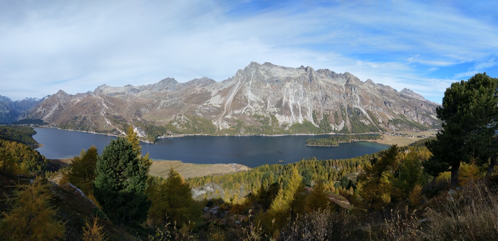 die Aussicht traumhaft. Zwischen dem Silsersee und Silvaplanersee liegt Sils-Maria Datum 28.10.2025