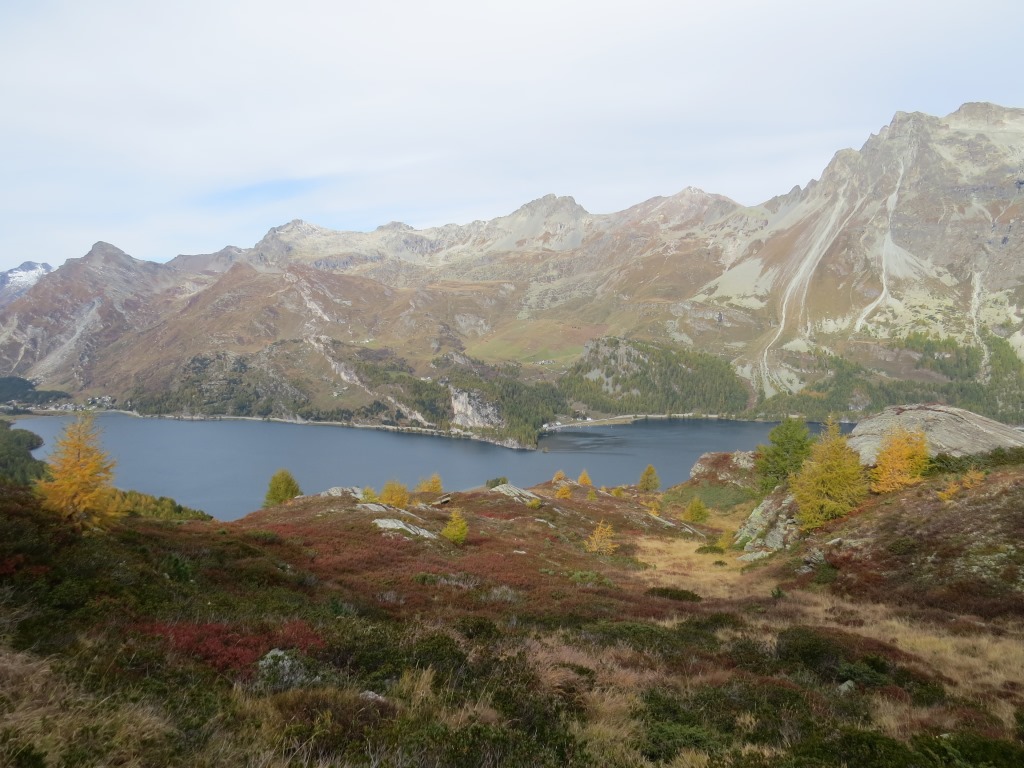 Blick auf die Engadiner Seenplatte mit Piz Julier, Piz Albana und Piz Nair, den haben wir auch schon besucht Datum 28.10.2025