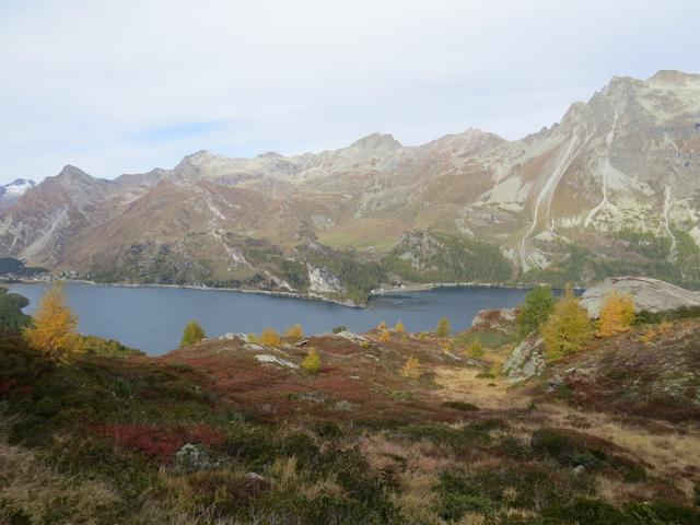 auf der anderen Seeseite erkennen wir das Dorf Grevasalvas. Dort waren wir auch schon Datum 28.10.2025