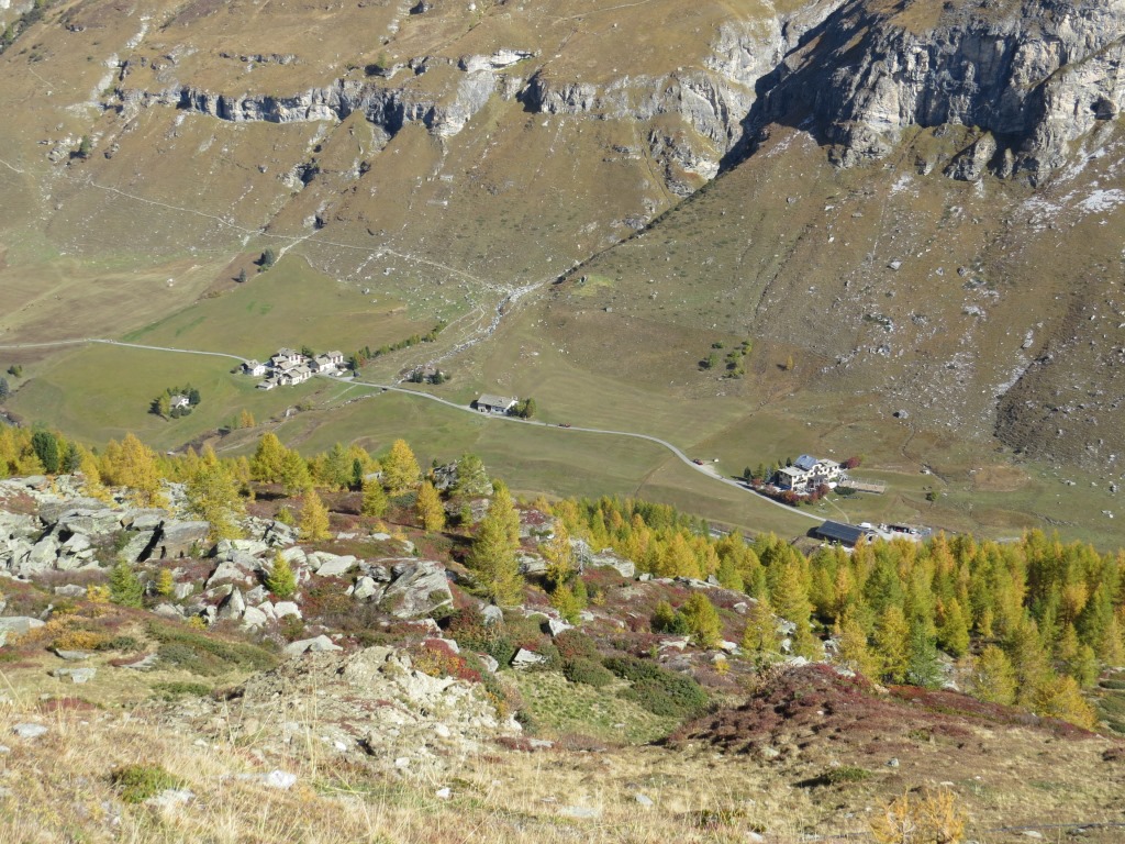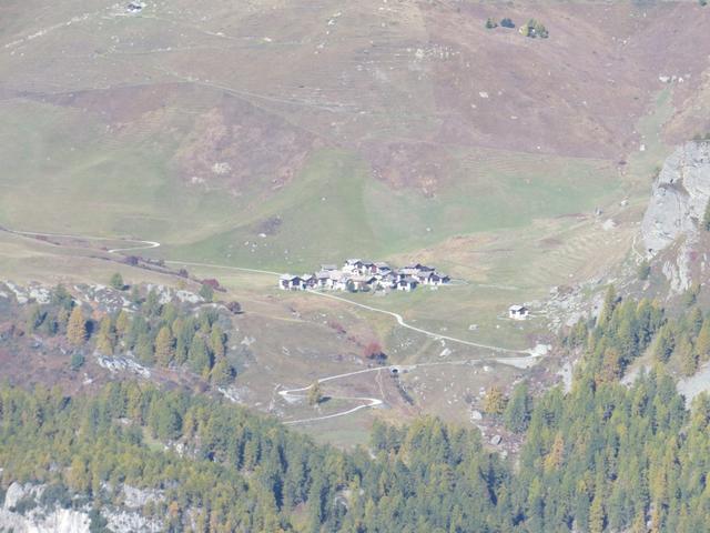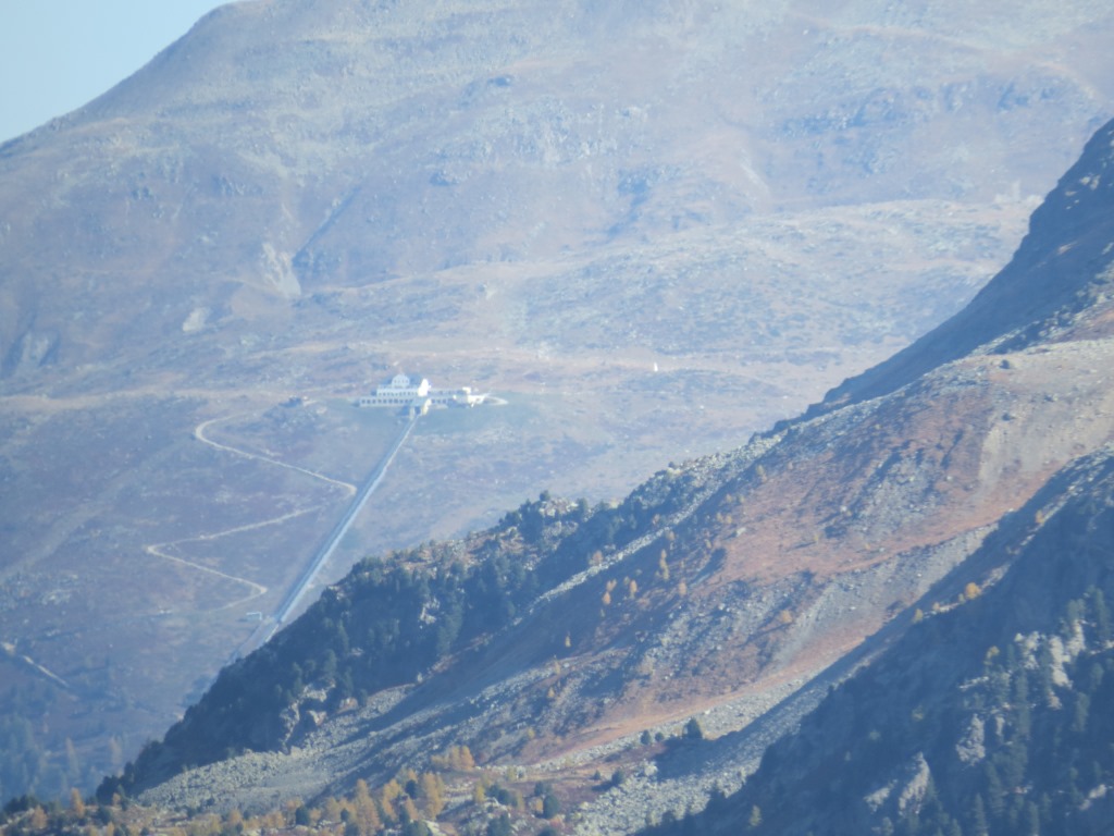 tief unter uns im Talboden das Hotel Fex und links davon Curtins Datum 30.10.2025