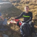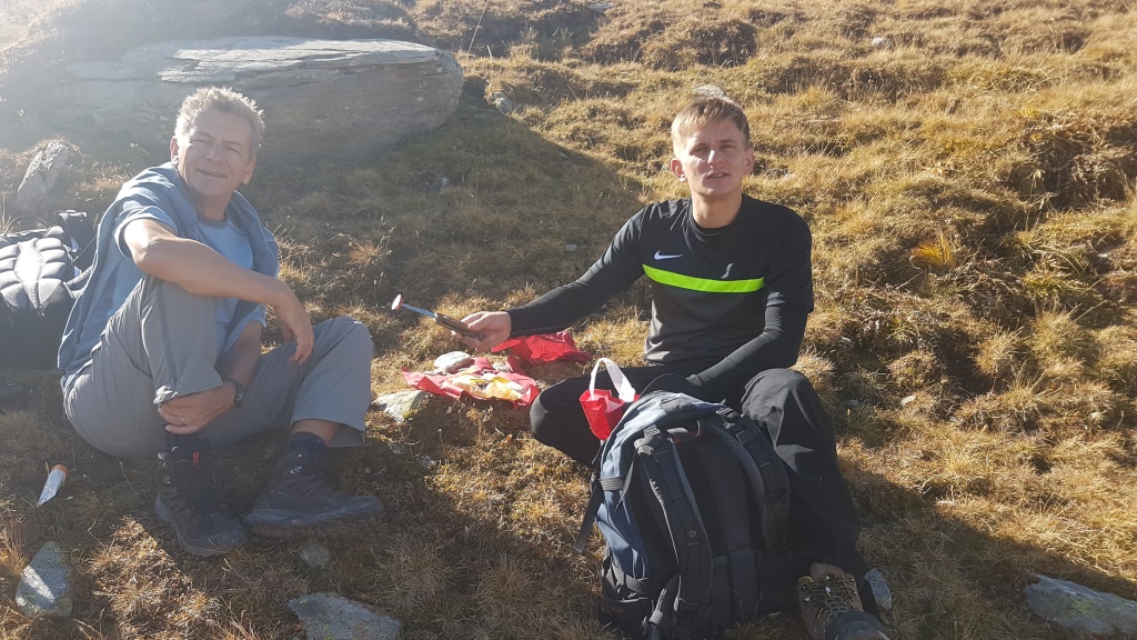 während dem Essen blicken wir zurück und hinauf zum Gipfel des Muott' Ota. Dahinter der Piz d'Emmat Dadaint Datum 30.10.2025