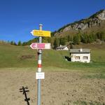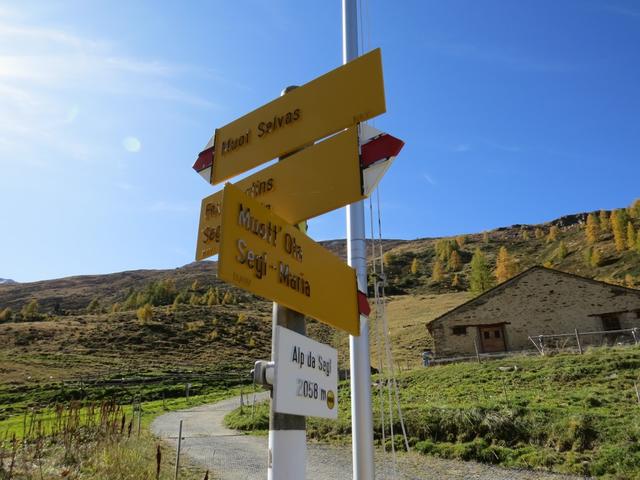 Wegweiser auf Alp da Segl 2058 m.ü.M. Hier biegen wir rechts ab Richtung Alp Muot Selvas Datum 30.10.2025
