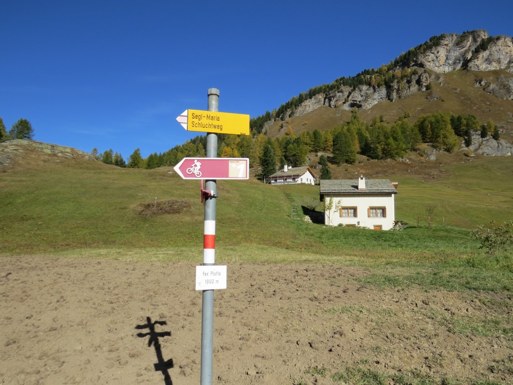 kurz nach Fex-Platta biegen wir in den Schluchtweg ein Datum 02.11.2025