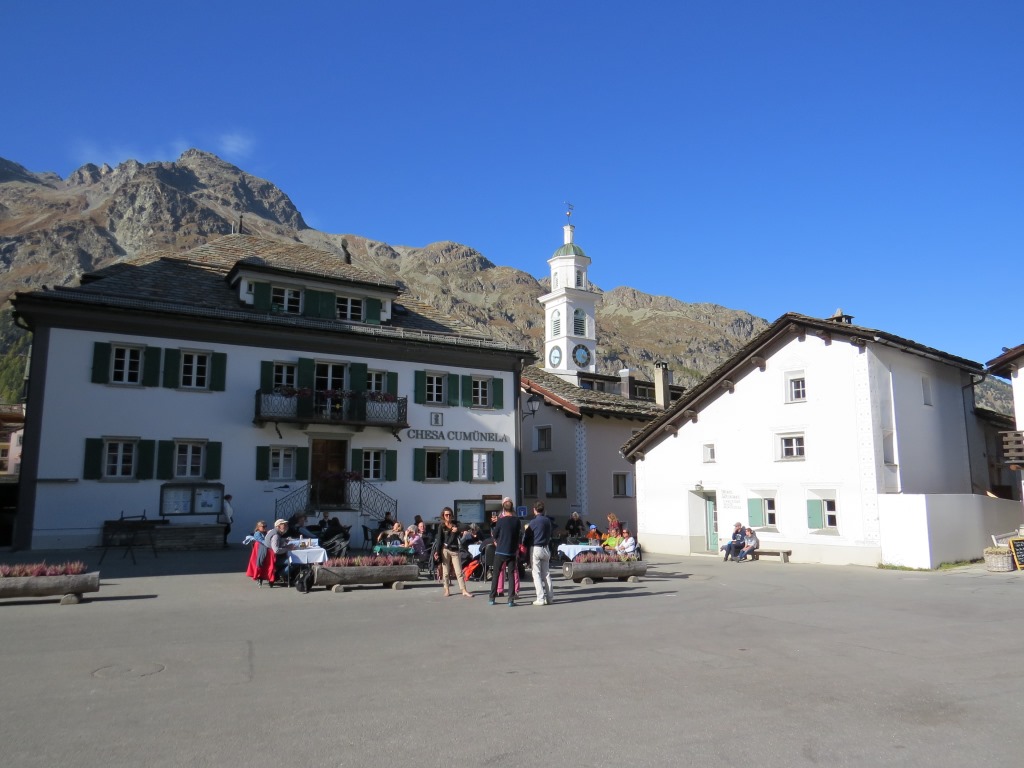 schliesslich erreichen wir am Gemeindehaus wieder Sils-Maria. Eine schöne Wanderung geht zu Ende Datum 02.11.2025