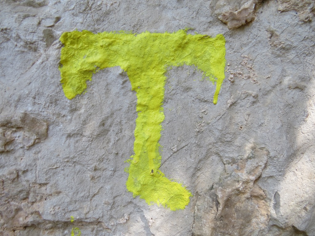 ausgebleichte Schilder der Via San Francesco zeigen uns den Wegverlauf Datum 14.12.2020