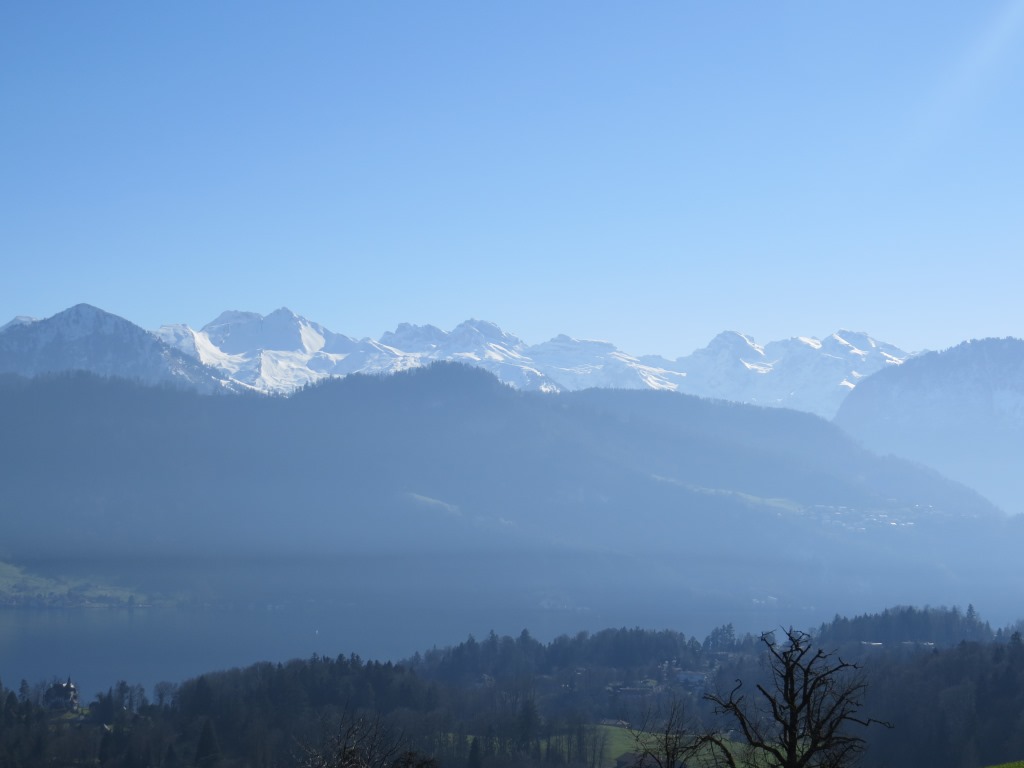 wir blicken auf Stanserhorn, Buochserhorn, Brisen und Uri-Rotstock die wir alle schon besucht haben Datum 19.03.2021