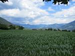noch einmal blicken wir zurück nach Feldthurns-Velturno. Dahinter türmt sich die Puez-Geisler Gruppe in die Höhe