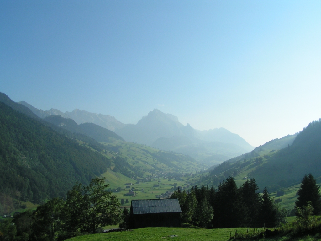 Blick Richtung Wildhaus. Im Hintergund Altmann