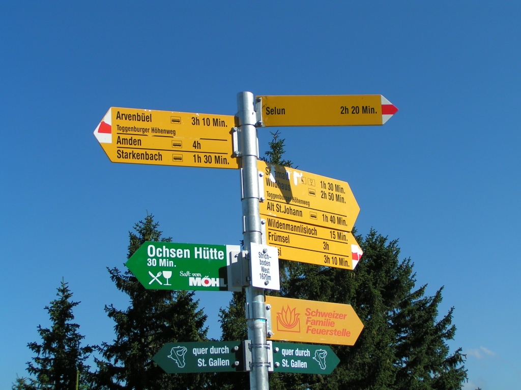 Wegweiser der uns den Weg Richtung Selun zeigt.