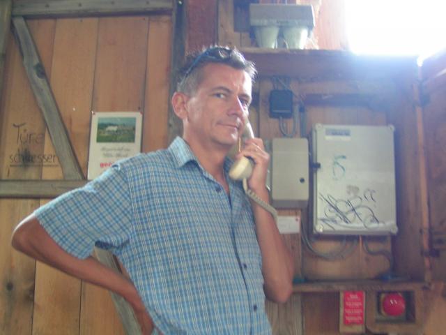 Franco am telefonieren, die Abfahrt verzögert sich.