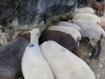 Schafen lecken den Salz vom Felsen ab