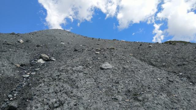 wir durchqueren Schutthänge die der Clozza Bach hinterlassen hat