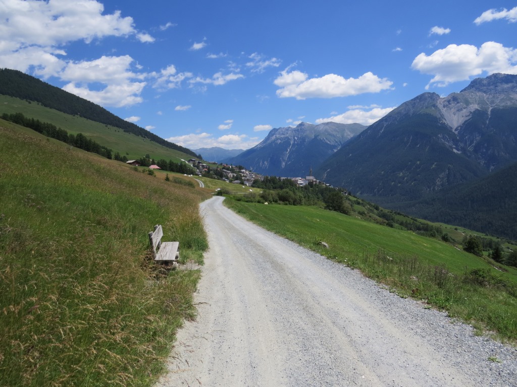 oberhalb von Sent biegen wir in eine Kiesstrasse ein, die uns ins Val Sinestra führen wird