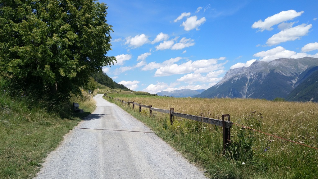 die Via Engiadina führt ohne merkliches Gefälle, nun immer in östlicher Richtung