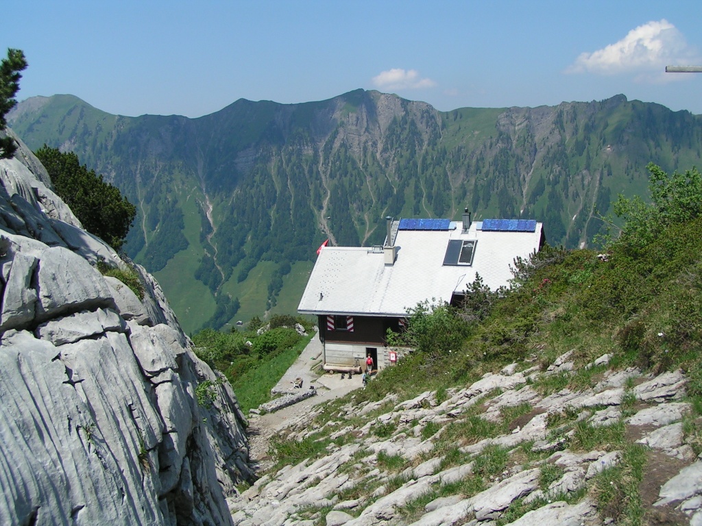 die Hütte, dahinter der Schmal Stöckli zuhinterst der Chaiserstock Datum 21.10.2006