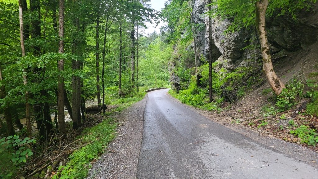 wir lassen die Weiler Schwarzenbach und Ried in Winkl hinter uns, kürzen die grosse Schleife der Strasse ab...