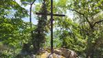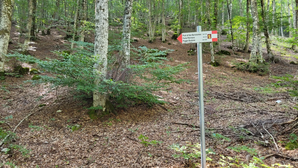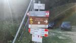 eine grosse Holzfigur des San Benedetto zeigt uns, das wir in diese Forststrasse einbiegen sollen