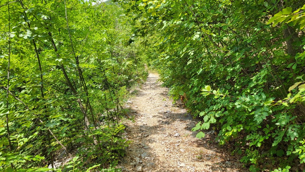 ein Schotterweg führt nun kräftig aufwärts